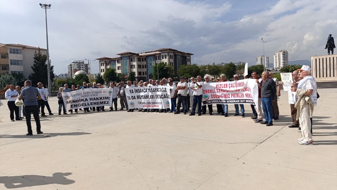 Mersin’in Toroslar ilçesinde yer alan Yunus Emre Kültür Merkezi önünde toplanan 2017 Tüm Emeklilerin Sendikası (Tüm Emekli Sen) Mersin Şubesi üyeleri, emeklilik hakları için kültür merkezinden Çağdaşkent’te yer alan Cumhuriyet Meydanı’na kadar yürüdü. Burada halk Kürsüsü kuran emekliler, bir basın açıklaması gerçekleştirdi. Açıklamayı Tüm Emekli Sen Mersin Şube Başkanı Ahmet Karakuş okudu.