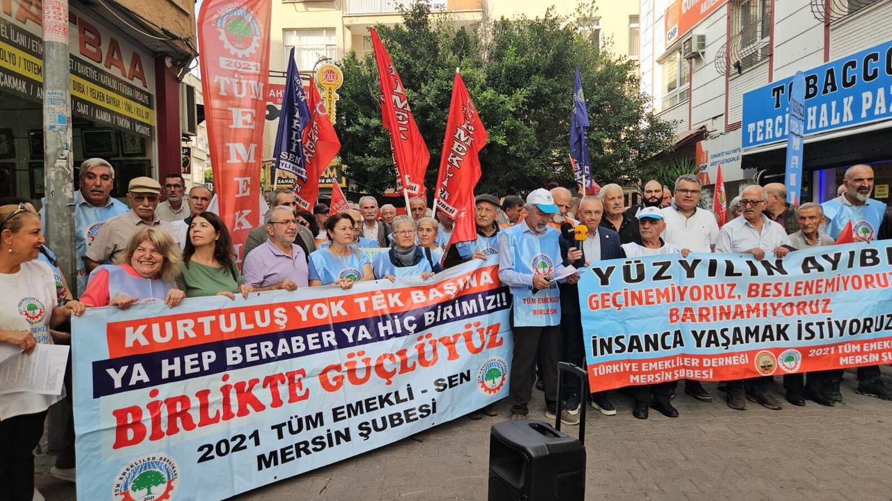 2021 Tüm Emeklilerin Sendikası (Tüm Emekli Sen) ile Türkiye Emekliler Derneği (TÜED) Mersin şubeleri, emeklilerin yaşadığı yoksulluğa karşı ortak bir basın açıklaması gerçekleştirdi. Tevfik Sırrı Gür Lisesi karşısında yapılan açıklamaya kentteki bazı sendika temsilcileri de destek verdi. Açıklamayı, 2021 Tüm Emekli Sen Mersin Şube Başkanı Hüseyin Kurt okudu. Sefalete teslim olmayacaklarını belirten Kurt, emekli sendikalarının kapatılmaya çalışıldığını savunarak buna karşı sokaklarda olacaklarını söyledi.