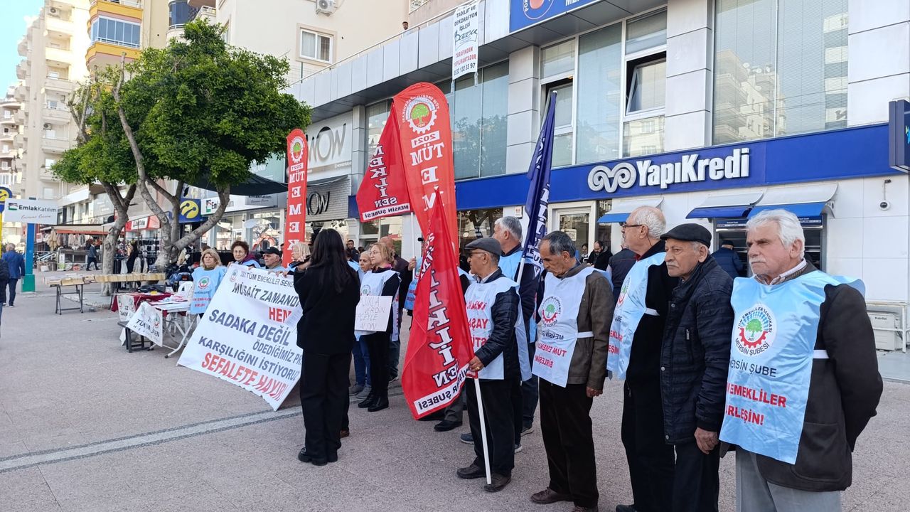 2021 Tüm Emeklilerin Sendikası (Tüm Emekli Sen) Mersin Şubesi üyeleri, Mezitli ilçesinde yer alan Bankalar Durağı önünde toplanarak haklarını talep ettiler. Açlığa ve yoksulluğa karşı mücadele edeceklerini duyuran emekliler, açıklamadan sonra stant kurarak Mersinli vatandaşlara kendilerine destek olmaları konusunda çağrıda bulundular. Açıklamayı 2021 Tüm Emekli Sen Mersin Şube Başkanı Hüseyin Kurt okudu.