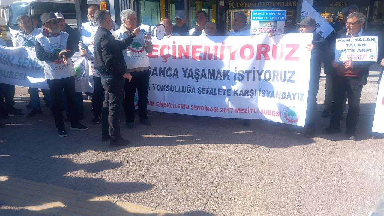 Emeklilerin 20 bin TL emekli maaşıyla anca hayatta kalma mücadelesi verebileceklerini iddia eden 2017 Tüm Emekli Sen Mezitli Şube Başkanı Murat Akkaya, “En düşük emekli aylığı 20 bin TL oldu’ dediler. Peki emekli bu parayla yaşayabilecek mi? TBMM Plan ve Bütçe Komisyonu’nda en düşük emekli aylığını 20 bin TL’ye çıkaran düzenleme kabul edildi. İktidar yine çıktı, yine ‘müjde’ diye anlattı. Ama biz biliyoruz: Bu bir müjde değil. Bu, yoksulluğu kalıcılaştıran yeni bir makyaj operasyonudur. Bugün emekliye reva görülen şey, insanca yaşam değil; hayatta kalma mücadelesidir. Bugün emekliye dayatılan şey, hak değil; Sadaka düzenidir. 20 bin TL: Yaşam mı, oyalama mı? Bu ülkede kiralar uçmuş, gıda fiyatları kontrolden çıkmış elektrik, su, doğalgaz faturaları emeklinin boğazına çökmüşken; 20 bin TL, emeklinin derdine çare değil, yaraya tuz basmaktır” dedi.