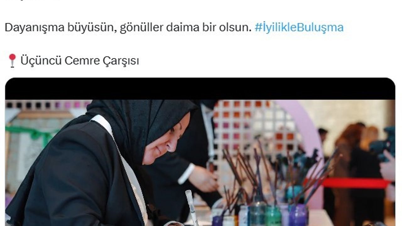 Emine Erdoğan, sosyal medya hesabından yaptığı paylaşımda, "İyilikle yoğrulan bu güzel birlikteliğin daha nice yürekte yankı bulmasını diliyorum. Dayanışma büyüsün, gönüller daima bir olsun" ifadelerini kullandı.