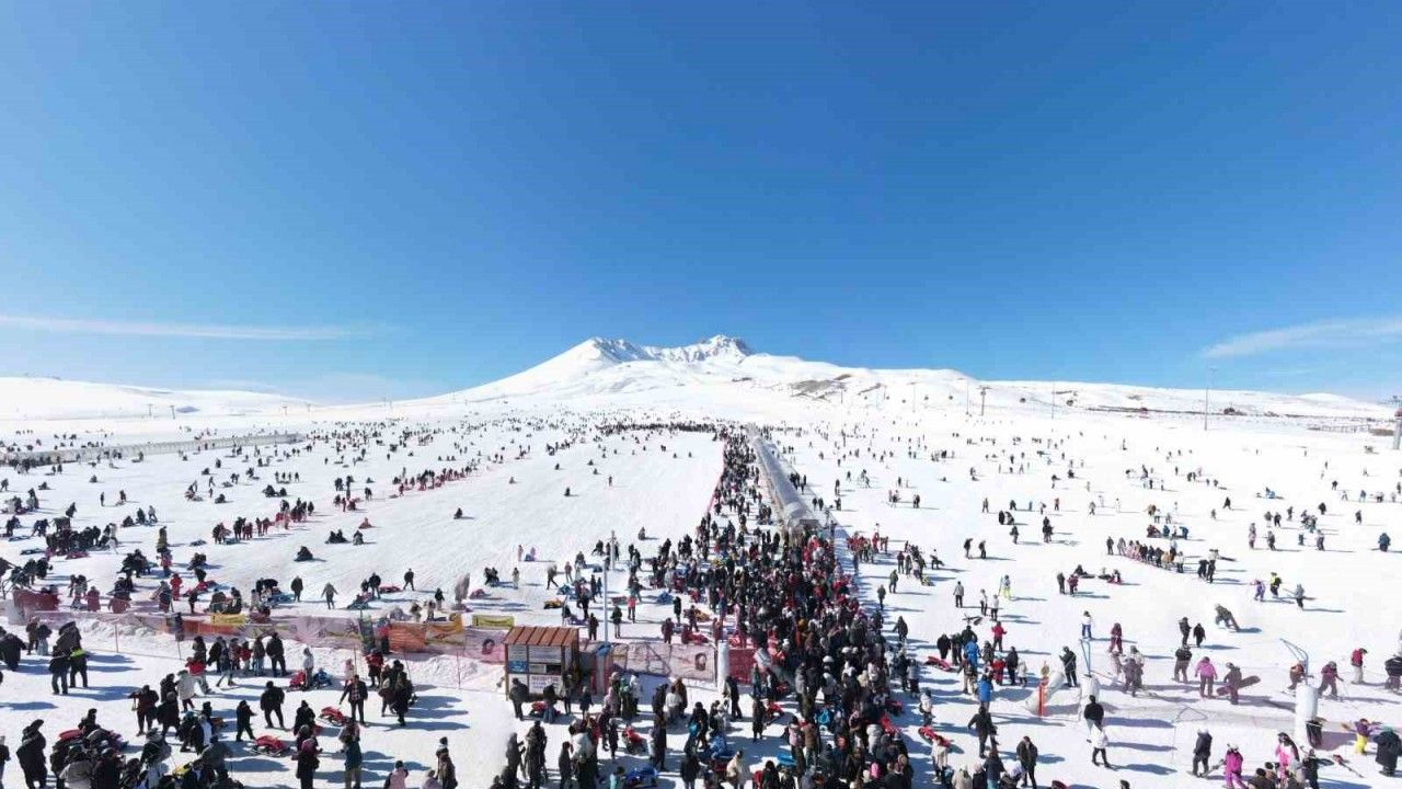 Türkiye’nin önemli kayak merkezlerinden olan Erciyes, hafta sonu binlerce turisti ağırlarken pistler turistlerle doldu taştı.