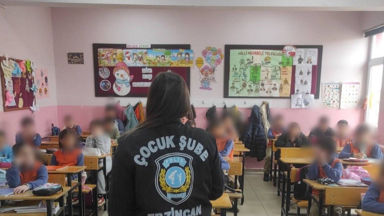 Erzincan’da polis ekiplerince, kent merkezinde bulunan okullarda kişisel güvenlik ve suçtan korunma yöntemleri, güvenli internet kullanımı, trafik güvenliği ile çocuk polisinin görevleri konularında bilgilendirme yapıldı.