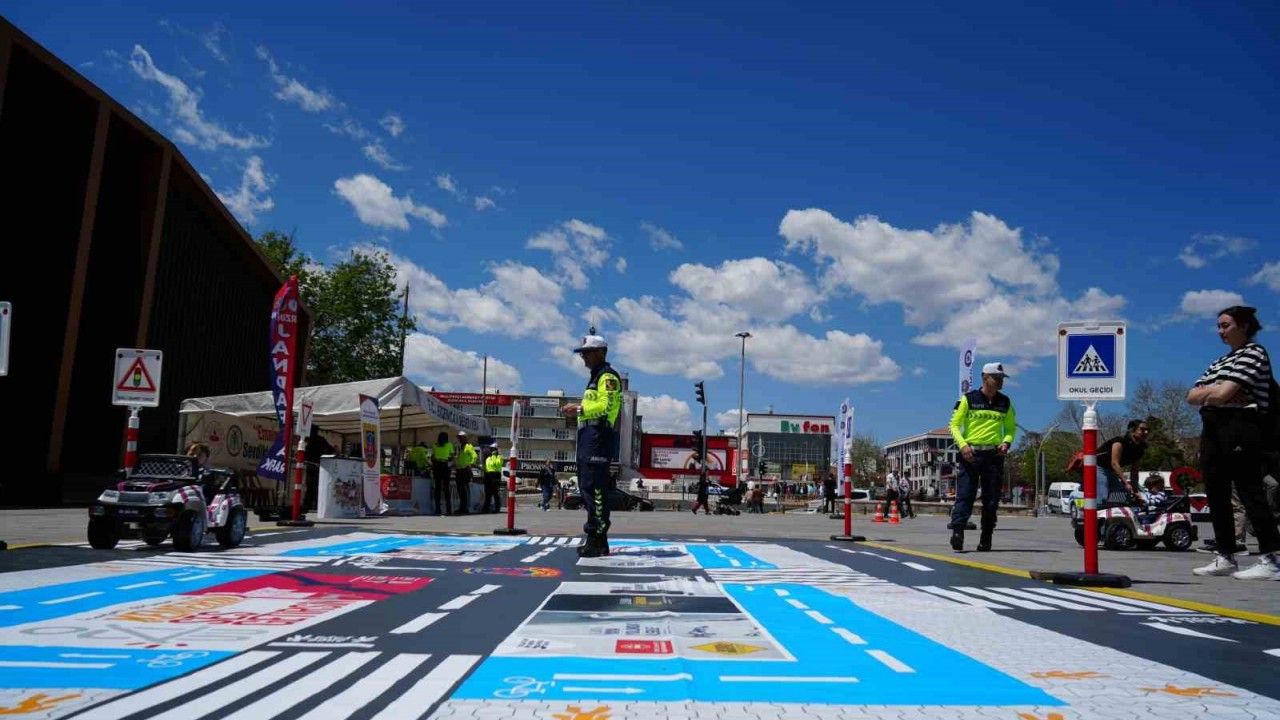 Görevliler, vatandaşları trafik kuralları ve güvenliği konusunda bilgilendirdi. Etkinlikte çocuklara özel hazırlanan eğitim parkurunda, akülü araçlarla yaya geçidi kullanma eğitimi verildi. Çocuklar mini araçlarla trafik deneyimi yaşarken büyükler 3 boyutlu gözlüklerle farklı heyecanlar yaşadı.