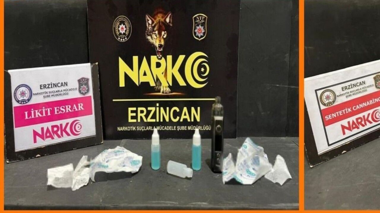 Erzincan İl Emniyet Müdürlüğü Narkotik Suçlarla Mücadele Şube Müdürlüğü personelince uyuşturucu madde ticareti yapan ve kullanan şahıslara yönelik yapılan çalışmalarda; S.B., A.S. ve F.K. isimli şahıslar yakalandı. Şahıslardan 56,14 gram likit esrar, 8,10 gram sentetik Cannabinoid maddesi ele geçirildi.