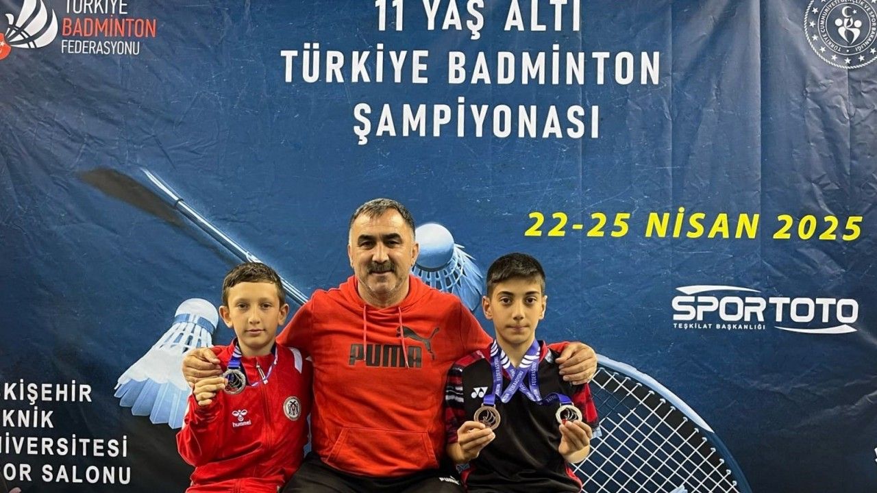 Eskişehir Teknik Üniversitesi Spor Salonu’nun ev sahipliğinde 22-25 Nisan 2025 tarihleri arasında düzenlenen 11 Yaş Altı Türkiye Badminton Şampiyonası’nda Erzincan’ın genç yetenekleri Ömer Atakan Korkut ve Kağan Mumcu 3 madalyanın sahibi oldu.