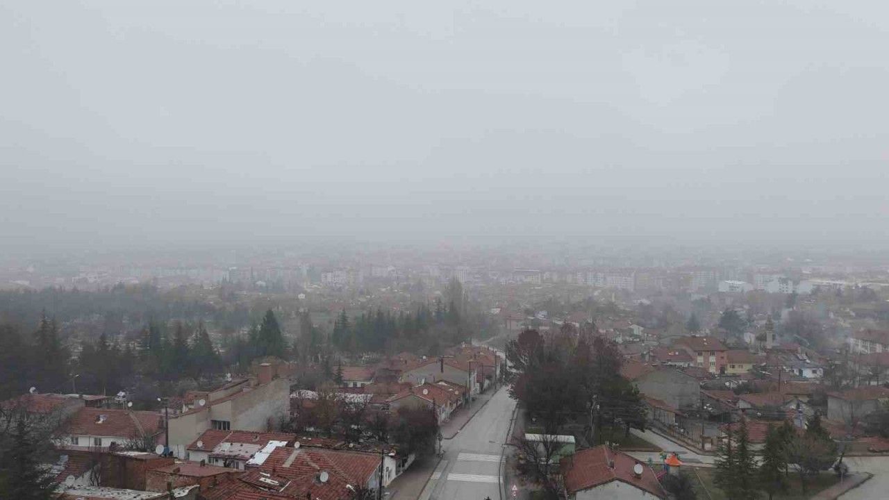 Meteoroloji tarafından Eskişehir için uyarısını sis ve pus sabah saatlerinde etkili olurken, oluşan manzara havadan görüntülendi.
