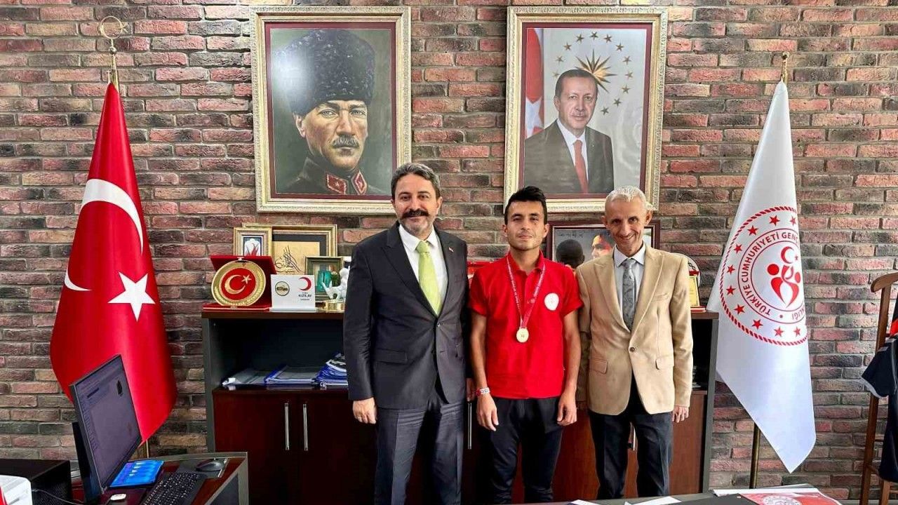 Eskişehir Doğan Aslan Bey Yurdu öğrencisi Okan Yumuk, YURTLİG Türkiye Atletizm Şampiyonası 3000 metre Cross yarışında Türkiye birincisi olarak büyük bir başarıya imza attı. Şampiyon sporcu, başarısının ardından İl Gençlik ve Spor Müdürü Hasan Kalın’ı makamında ziyaret etti.
