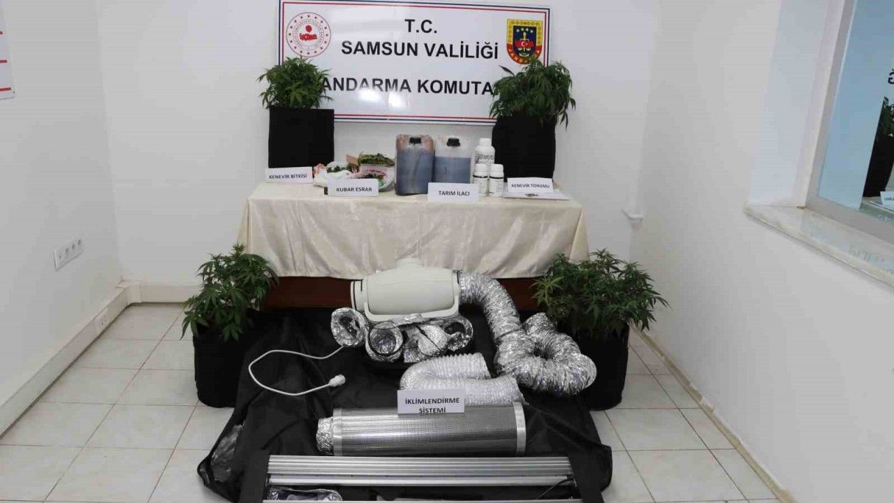 Olay, Atakum ilçesi Denizevleri Mahallesi’nde meydana geldi. Edinilen bilgiye göre, Samsun İl Jandarma Komutanlığı İstihbarat Şube Müdürlüğü, KOM Şube Müdürlüğü ve Atakum İlçe Jandarma Komutanlığı ekipleri, Y.Y. (40) isimli şahsın evine iklimlendirme sistemi kurarak uyuşturucu imal ettiği bilgisine ulaştı. Yapılan operasyonda şahsın evinde yapılan aramalarda 1 adet iklimlendirme sistemi, 355 gram kubar esrar, 4 adet ekili kenevir bitkisi ve bir miktar uyuşturucu madde ele geçirildi.