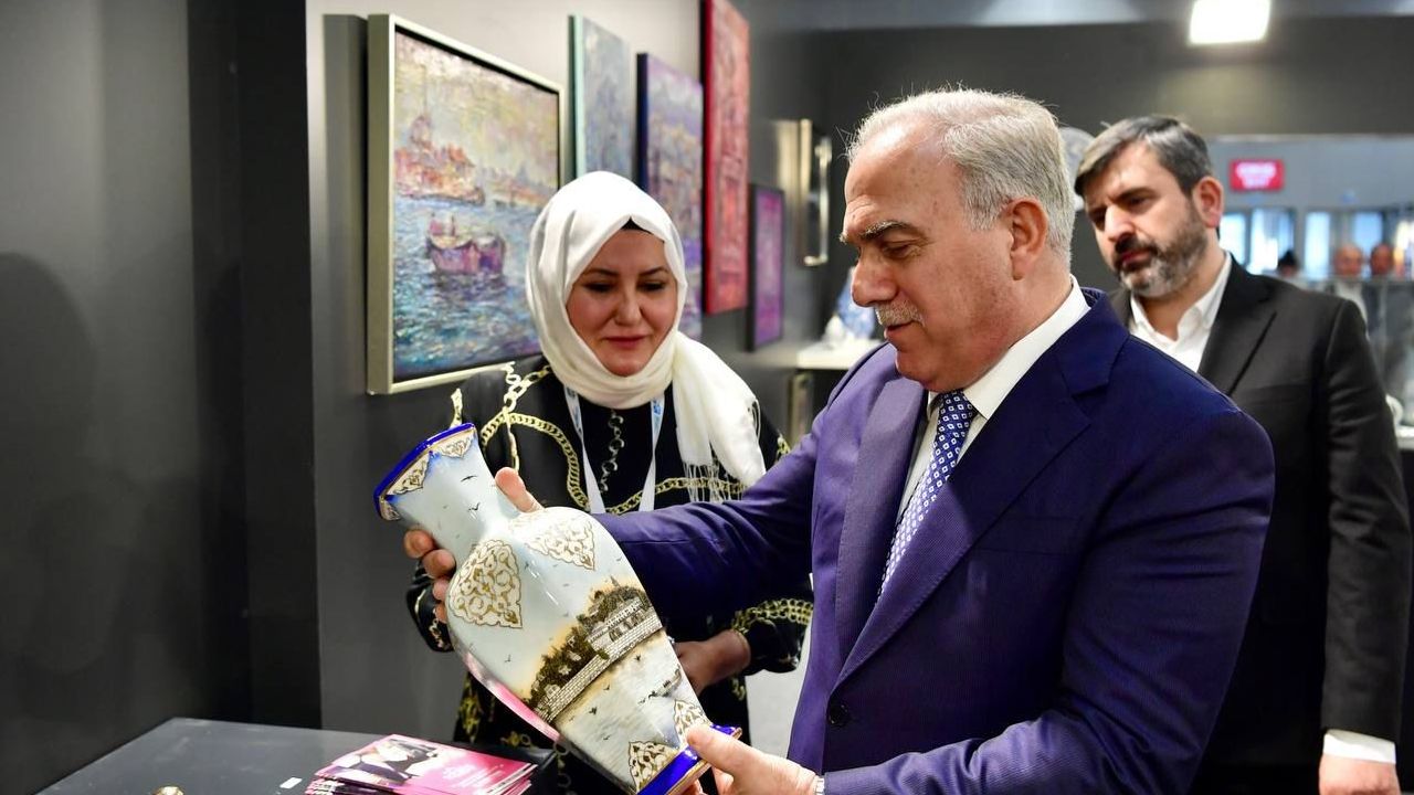 Açılışa katılan Fatih Belediye Başkanı M. Ergün Turan yaptığı konuşmada, İstanbul’un geçmişte olduğu gibi bugün de doğu ile batı arasında kültürel ve sanatsal bir köprü vazifesi gördüğünü belirterek şunları söyledi: "Bu şehir yüzyıllar boyunca kültürün, sanatın merkezi olmuş; farklı medeniyetleri, inançları ve sanat anlayışlarını bir araya getirmiştir. Bizler de siyasetçiler, sanatçılar ve girişimciler olarak İstanbul’un bu kadim misyonundan ilham alıyoruz. İstanbul’un çok katmanlı kültürünü çağdaş sanatla buluşturan bu tür etkinlikleri önemsiyoruz. KARINCA projemizle hem kadın emeğini görünür kılıyor hem de geleneksel üretim tekniklerini modern sanat anlayışıyla harmanlıyoruz. Bu fuarda emeği geçen Bilgin Aygül başta olmak üzere tüm emeği geçenlere gönülden teşekkür ediyorum."