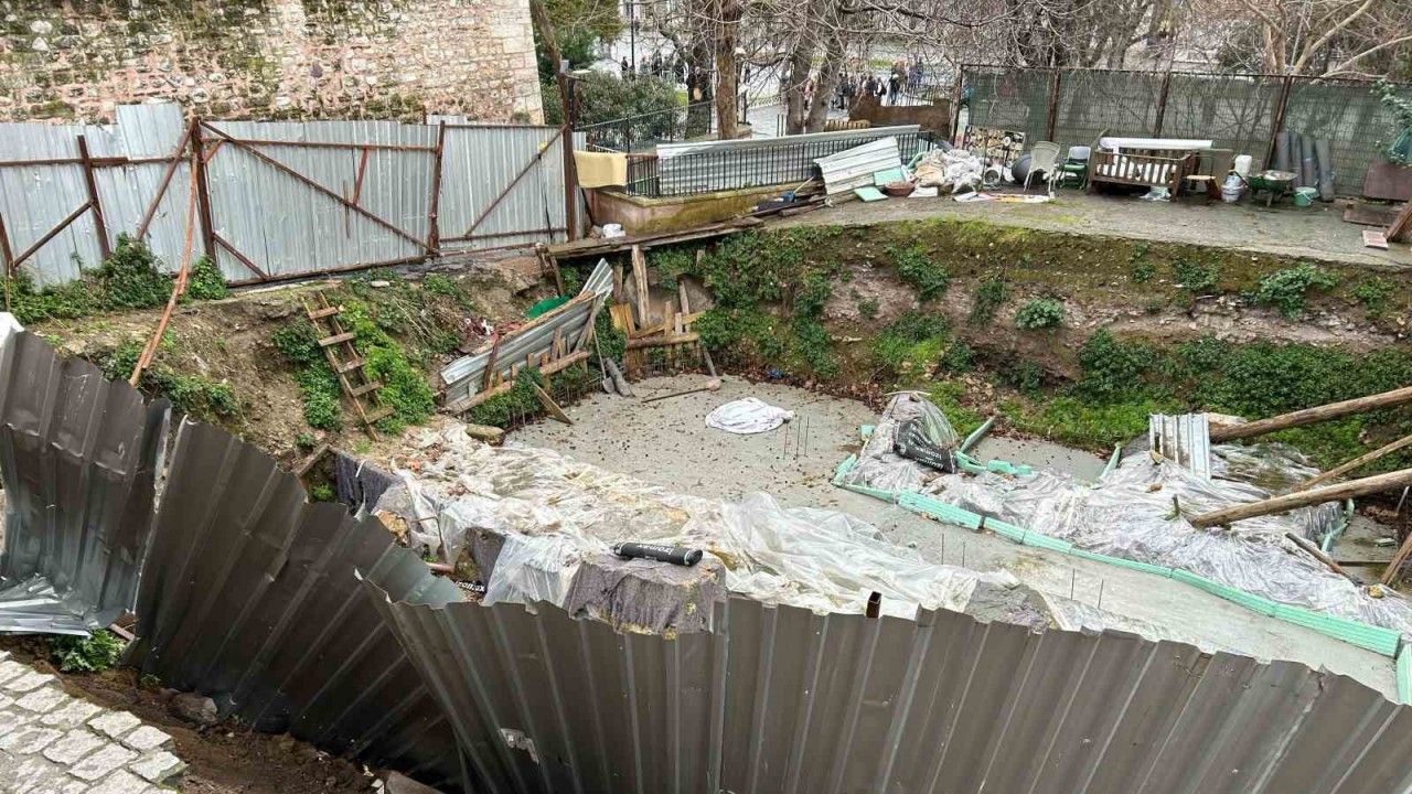 Fatih Sultanahmet’te şantiye alanında meydana gelen toprak kaymasının ardından yol çöktü. Çökme anı güvenlik kamerasına yansırken çöken yol dron ile görüntülendi.
