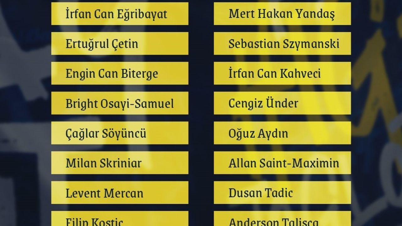 Sarı-lacivertlilerin kamp kadrosunda şu isimler yer alıyor: