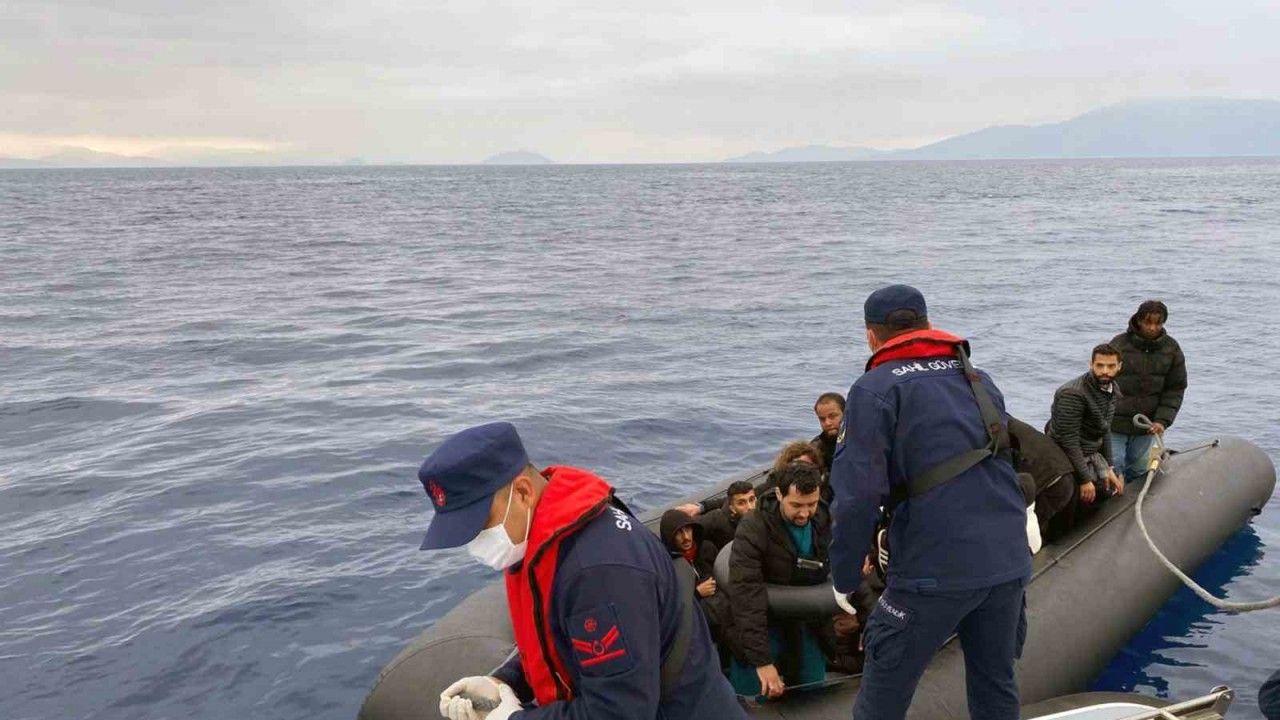 Muğla’nın Fethiye ilçesinde Sahil Güvenlik botu tarafından tespit edilen lastik bot içinde 19 düzensiz göçmen yakalandı.