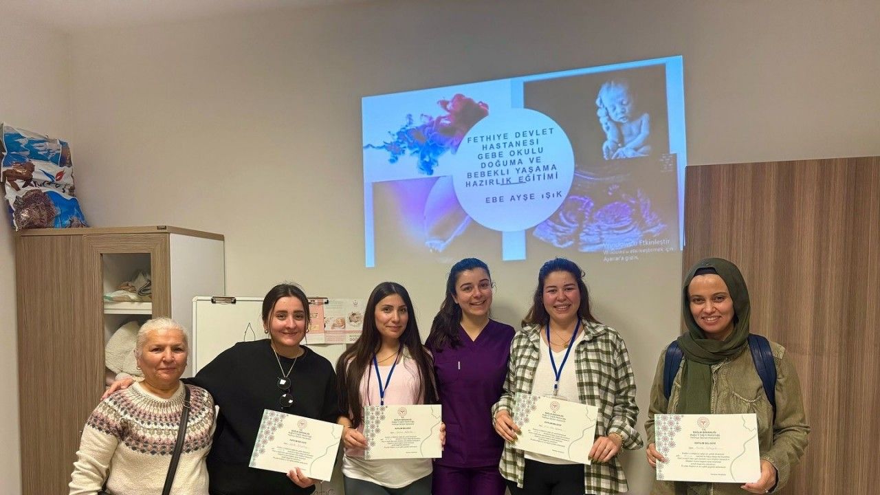 Fethiye Devlet Hastanesi, anne ve baba adaylarına doğum öncesi, doğum ve doğum sonrası süreçler hakkında bilgi vermek ve bilinçli doğum yapmalarını sağlamak amacıyla düzenlenen gebe okulu eğitimlerini sürdürüyor. ’Doğuma Hazırlık ve Bebekli Yaşama Geçiş’ başlığı altında verilen eğitimler, anne ve baba adaylarına doğum sürecine dair bütüncül bir anlayış kazandırmayı hedefliyor. Eğitim kapsamında gebelik sürecini ve doğumu anlama, yenidoğan bakımı ve emzirme, doğum sonrası anne-bebek bağlanması gibi konular ele alınıyor. Ayrıca, doğumu kolaylaştırıcı nefes ve gevşeme teknikleri de uygulamalı olarak öğretiliyor.
