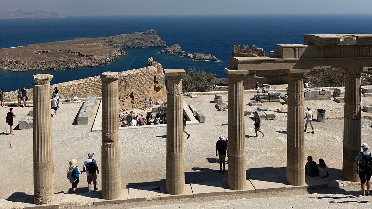 Lindos’un en etkileyici noktası ise hiç şüphesiz Akropolü. Akropol, Yunanca’da yüksek şehir anlamına geliyor. Şehrin içinden tepeye çıkarken kayaya işlenmiş bir Antik Çağ teknesi ve yazıt karşınıza çıkıyor. Binlerce yıl önceden kalan bu kaya oyması beni çok etkiledi. O dönemin denizciliğine dair ışık tutması çok anlamlıydı.