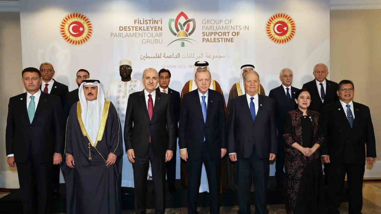 Filistin’i Destekleyen Parlamentolar Grubu Toplantısı, İstanbul’da TBMM Başkanı Numan Kurtulmuş’un ev sahipliğinde Cumhurbaşkanı Recep Tayyip Erdoğan’ın katılımıyla gerçekleştirildi. Toplantı öncesi Cumhurbaşkanı Erdoğan, meclis başkanlarıyla aile fotoğrafı çektirdi ve tek tek meclis başkanlarıyla selamlaştı. Cumhurbaşkanı Erdoğan, toplantıdaki konuşmasında Filistin davasını savunmanın sadece mazlum bir halkı savunmak olmadığını, Filistin’i savunmanın insanlığı, barışı ve adaleti savunmak olduğunu belirtti. Erdoğan, Filistin davasının yaklaşık bir asırdır her türlü zulme, barbarlığa ve katliama maruz kalmış bir halkın haysiyet davası olduğunu vurguladı. "Gazeteciler öldürülüyor, uluslararası basın kuruluşları seyrediyor. Çocuklar öldürülüyor, insan hakları savunucuları seyrediyor. Sağlık çalışanları öldürülüyor, Batı dünyası seyrediyor. Yıllardır özgürlükten, haktan, hukuktan, basın hürriyetinden bahsedenler, İsrail’in katliam politikası karşısında tam 18 aydır üç maymunu oynuyor" diyen Cumhurbaşkanı Erdoğan, en küçük bir hadisede ambargo silahını çeken Batılı devletlerin İsrail’e karşı sessiz kaldığını vurguladı.