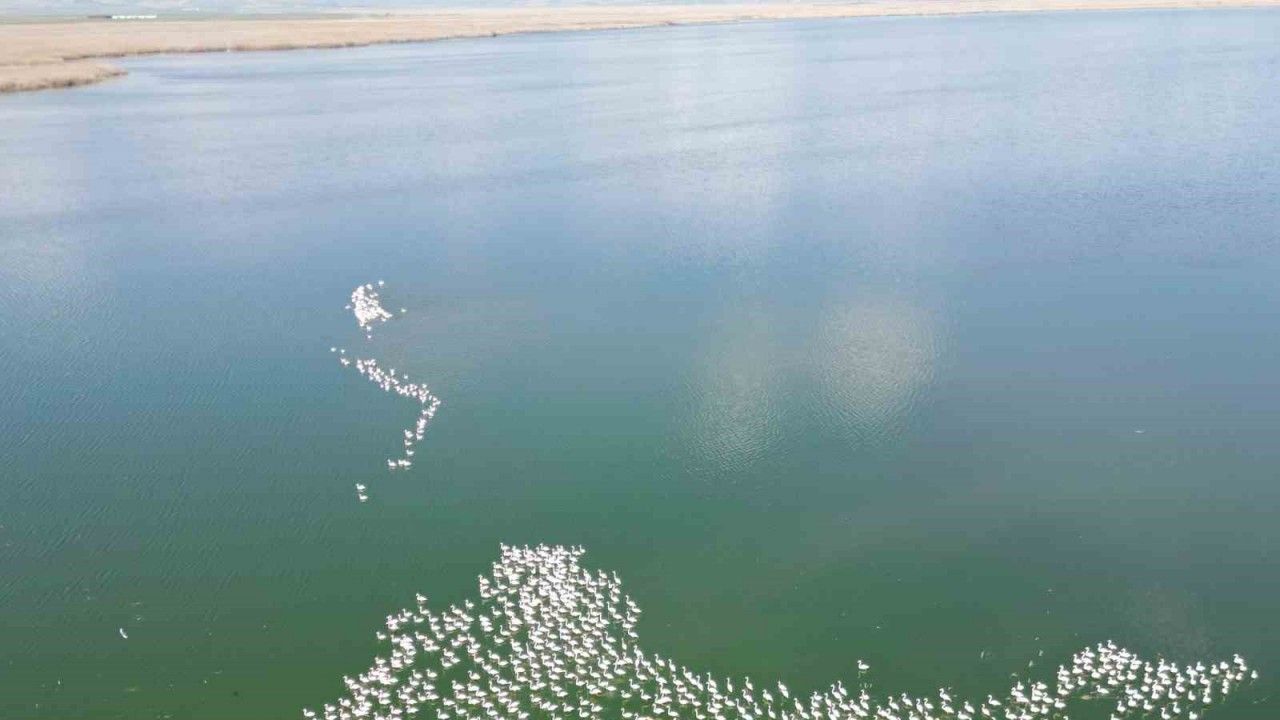 Allı turna olarak da bilinen flamingolar her yıl olduğu gibi bu yıl da Afyonkarahisar’ın Bolvadin ilçesindeki Eber Gölü’nde mola verirken doğanın bahara uyanışını müjdeledi.