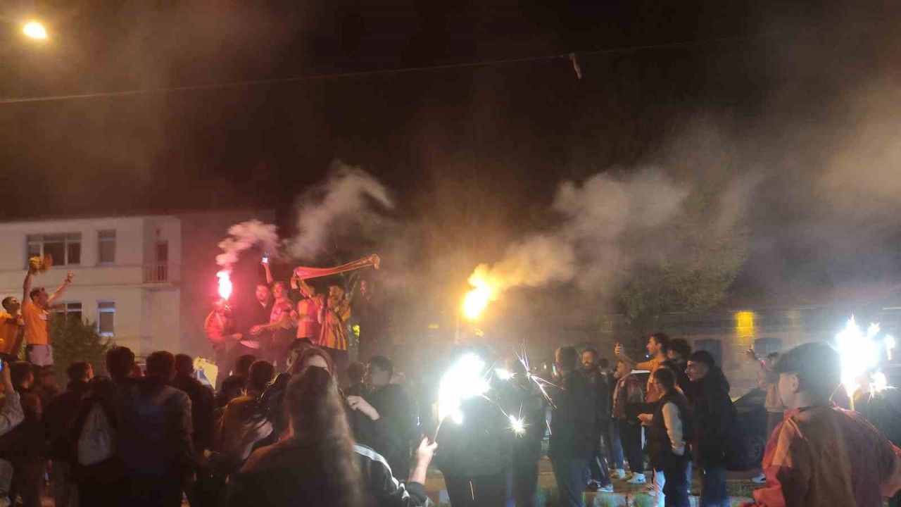 Galatasaraylı taraftarlar, Trendyol Süper Lig’de mutlu sona ulaşan takımlarının şampiyonluğunu Ardahan’da kutlamaya başladı.