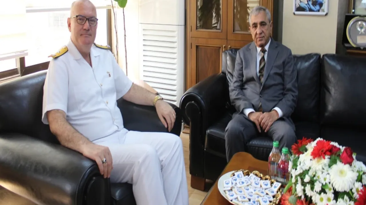 Akdeniz Bölge ve Garnizon Komutanı Tuğamiral Murat Fırat, Mersin Esnaf ve Sanatkarlar Odaları Birliği Yönetim Kurulu Başkanı Veysel Sarı’ya nezaket ziyaretinde bulundu.