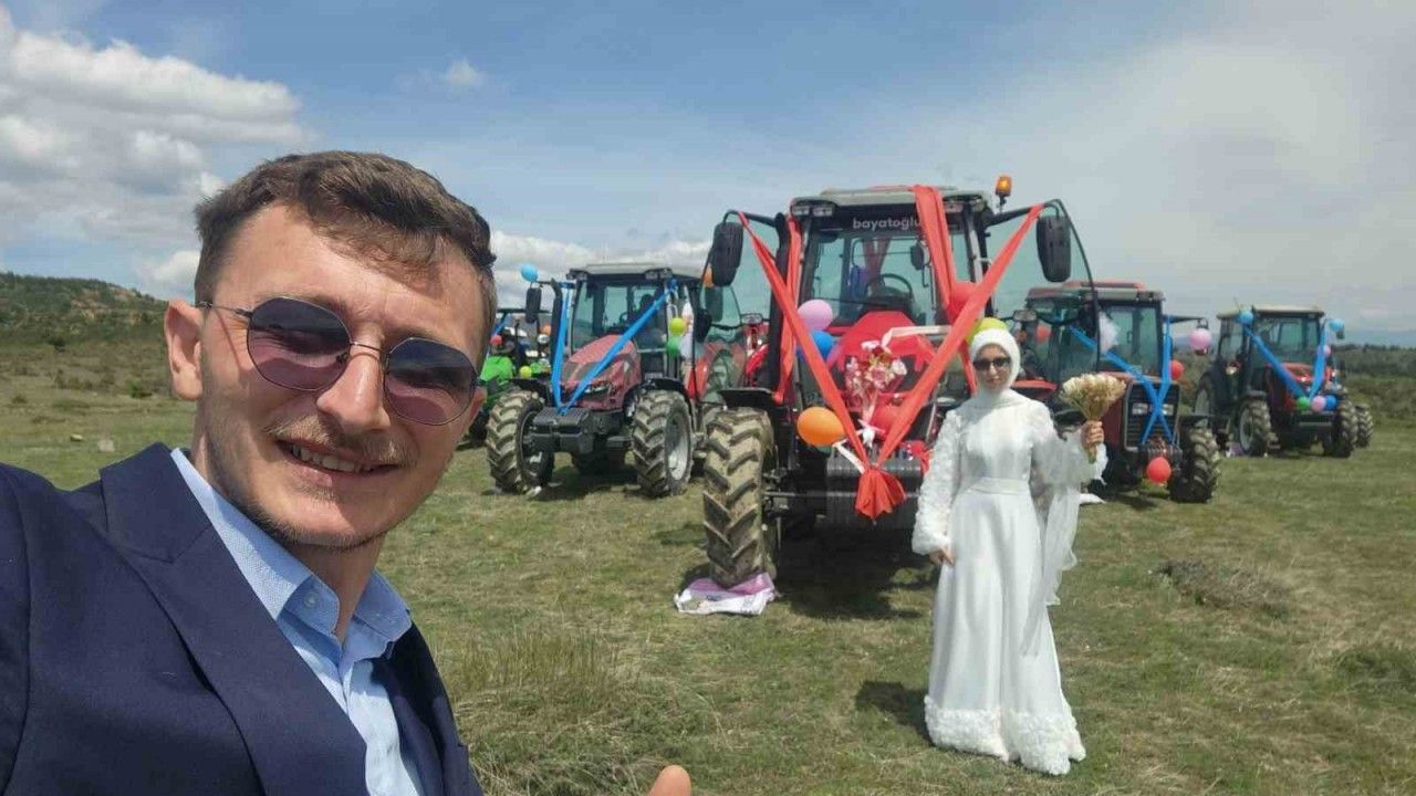 Kastamonu’nun Taşköprü ilçesine bağlı Afşar köyünde çiftçilik yapan Yusuf Koca ve Elifnur Eroğlu, düzenlenen düğün merasimiyle dünya evine girdi. Çift düğün öncesi, düğün arabası olarak traktörlerini kullanmaya karar verdi. Traktörü süsleyen çift, daha sonra köyde traktörle dolaştı. Çiftin arkadaşları da konvoya traktörlerle katıldı. Gelin Elifnur Eroğlu’nun direksiyon başına geçmesi ise renkli görüntülere sahne oldu. Sosyal medyada paylaşılan traktörlü düğün konvoyu görüntüleri büyük ilgili gördü.
