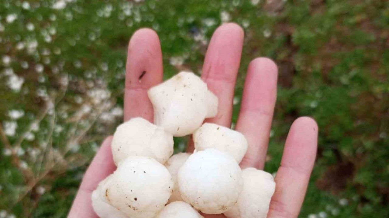 Van’ın Gevaş ilçesinde ceviz büyüklüğünde dolu yağdı.