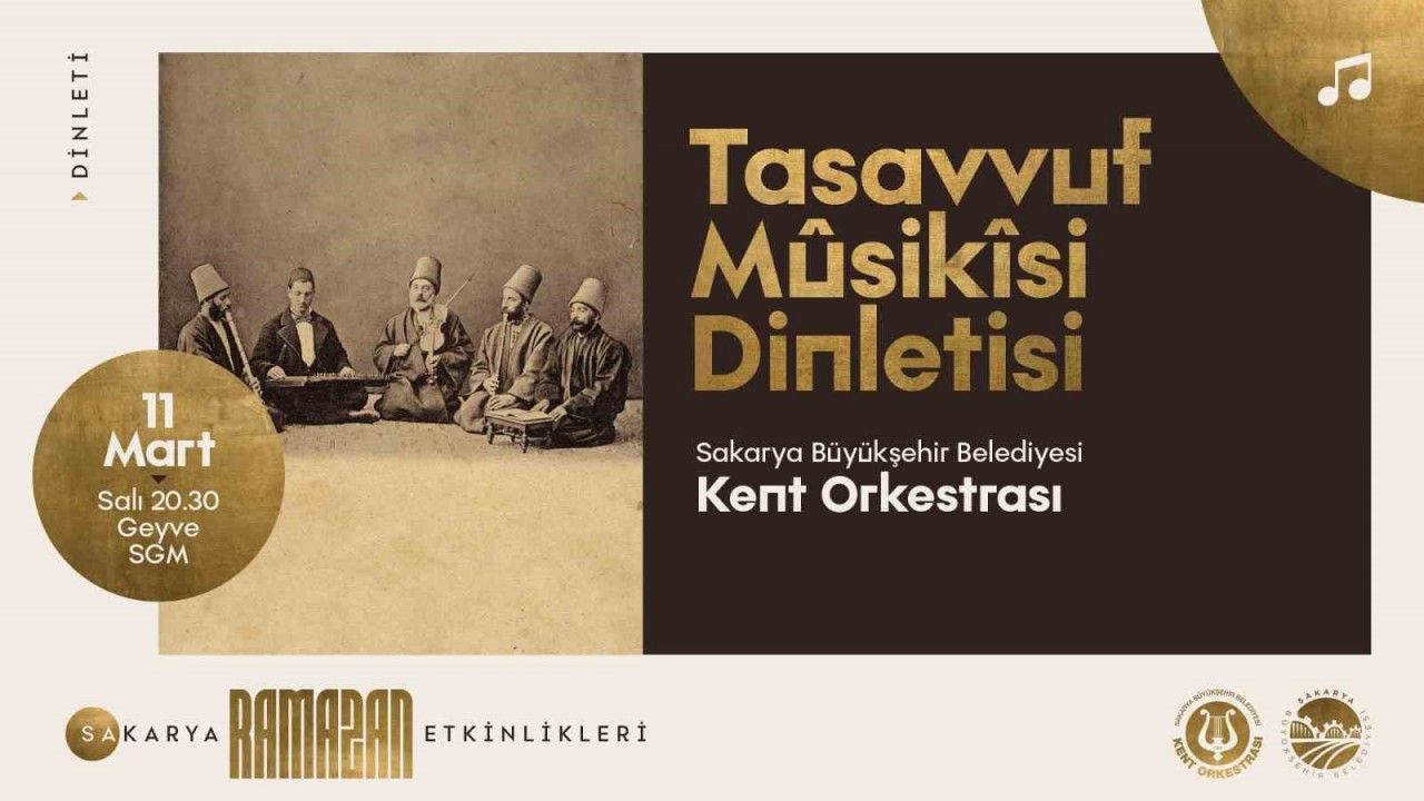 Sakarya Büyükşehir Belediyesi şehrin dört bir yanında düzenlediği kültür-sanat etkinlikleriyle Sakaryalılara Ramazan’ın hazzını, tadını yaşatıyor. 11 ayın sultanı Ramazan’ın ayının manevi değerini yaşatan Büyükşehir bu kez Geyve’de vatandaşları iki güzel etkinlikte buluşturacak. Bu çerçevede 11 Mart Salı günü ilk program saat 20.30’da Sakarya Büyükşehir Belediyesi Kent Orkestrası tarafından Tasavvuf Musikisi Dinletisi sahnelenecek.