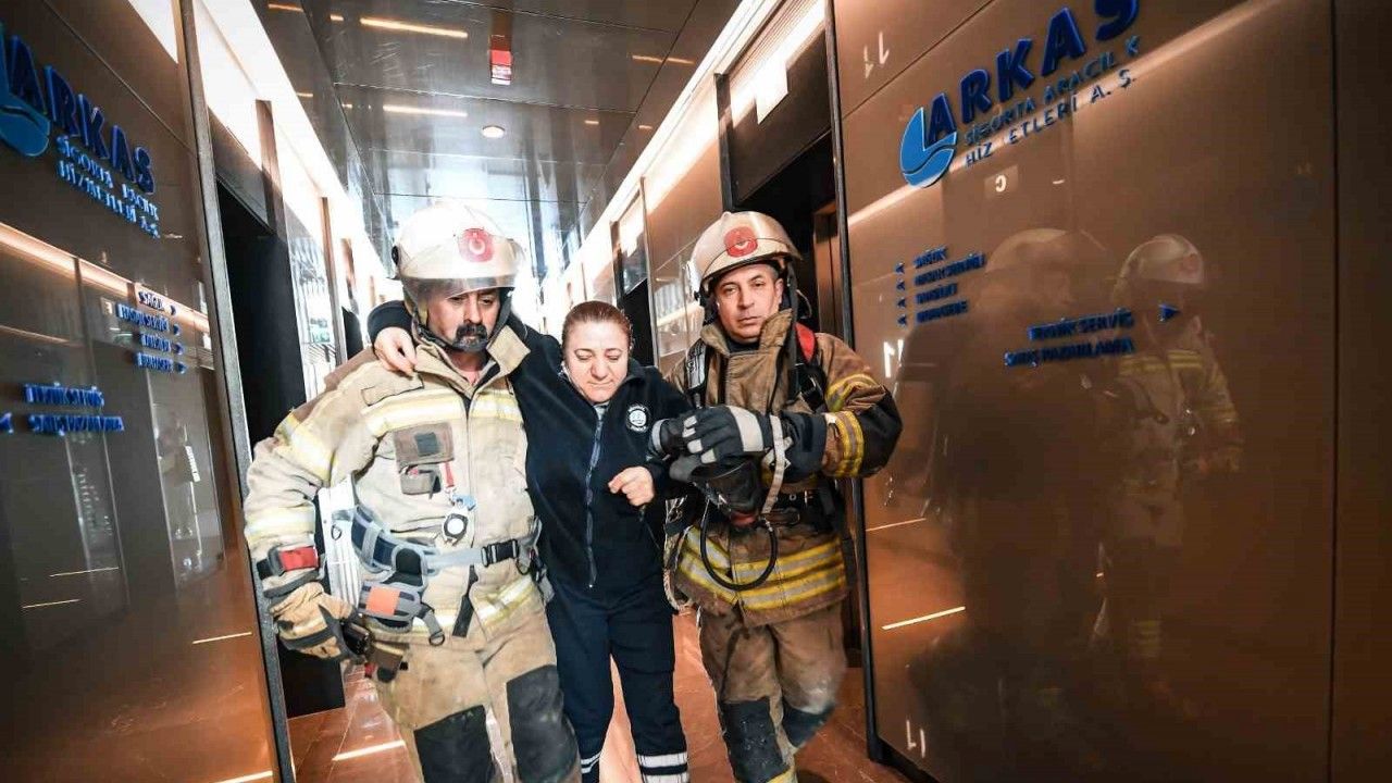 Senaryo gereği 11. katta mahsur kalan bir personelin saniyelerle yarışarak kurtarıldığı dev tatbikatta, yüksek katlı binalarda tahliye yollarının önemi ve acil müdahale kapasitesi sahada test edildi.