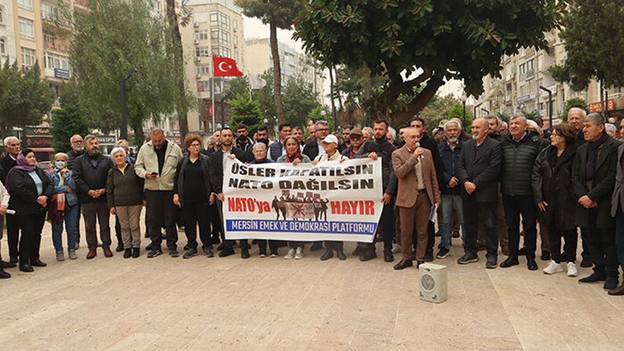 Mersin Emek ve Demokrasi Platformu üyeleri, Akdeniz ilçesinde yer alan Özgür Çocuk Parkı’nda bir araya gelerek Kuzey Atlantik Antlaşması Örgütü’ne (NATO) ve NATO’nun yürüttüğü politikalara tepki gösterdi. “Üstler kapatılsın, NATO dağılsın. NATO’ya hayır” yazılı pankartın açıldığı açıklamayı platform adına DİSK Genel-İş Mersin Şube Başkanı Kemal Göksoy okudu.