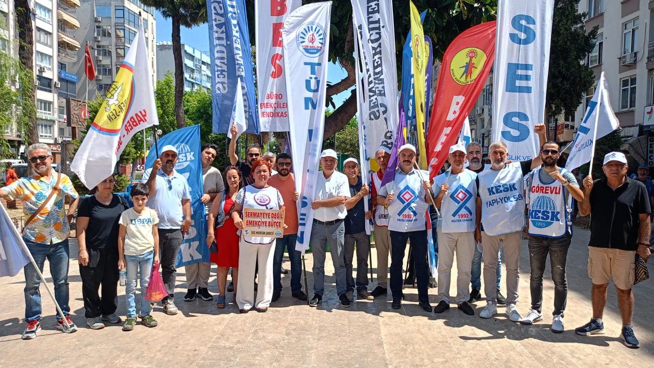 Memurların dört gözle beklediği toplu iş sözleşmesi görüşmelerinde hükümetin yaptığı tekliflere tepki gösteren kamu emekçileri sendikaları bugün iş bırakma kararı almıştı. 18 Ağustos’ta iş bırakacağını ilan eden sendikalar Mersin’de Özgür Çocuk Parkı’nda protesto düzenleyerek açıklama yaptı. Mersin KESK, Çalışan-Sen, Devlet Memurları Konfederasyonu (DMK), Bağımsız Kamu Görevlileri Sendikaları Konfederasyonu (BASK), Hak-Sen, Askeri İş Yerlerinde Görevli Kamu Çalışanları Sendikası (ASİM-SEN) ve Yurt-Sen’in katıldığı açıklamada mücadele mesajları verildi.