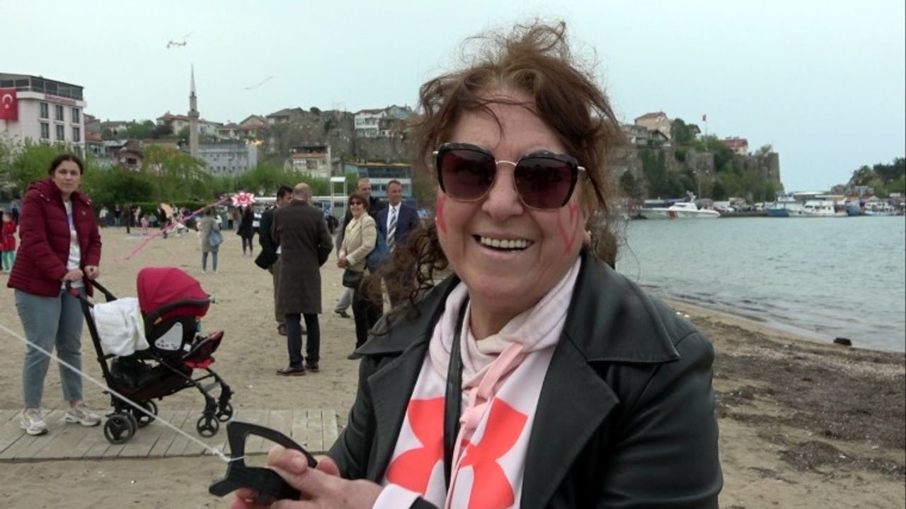 İstanbul’da yaşayan Sakine Altay, eşi ve çocuğu ile birlikte Bartın’ın tarihi ve turistik yerlerinden Amasra ilçesine gezmeye geldi. İlçede 23 Nisan Ulusal Egemenlik ve Çocuk Bayramı nedeniyle düzenlenen uçurtma şenliğine katılan Sakine Altay, doğum gününü uçurtma uçurarak kutladı. Amasra’yı çok beğendiğini söyleyen Sakine Altay, "Bugün benim doğum günüm. Kızım İstanbul’dan getirdi beni. Gezmeye geldik, doğum günümü kutlamak için geldik. Çok güzel bir gün geçiriyoruz. İlk defa geldik Amasra’ya. Çok sevdik" dedi.