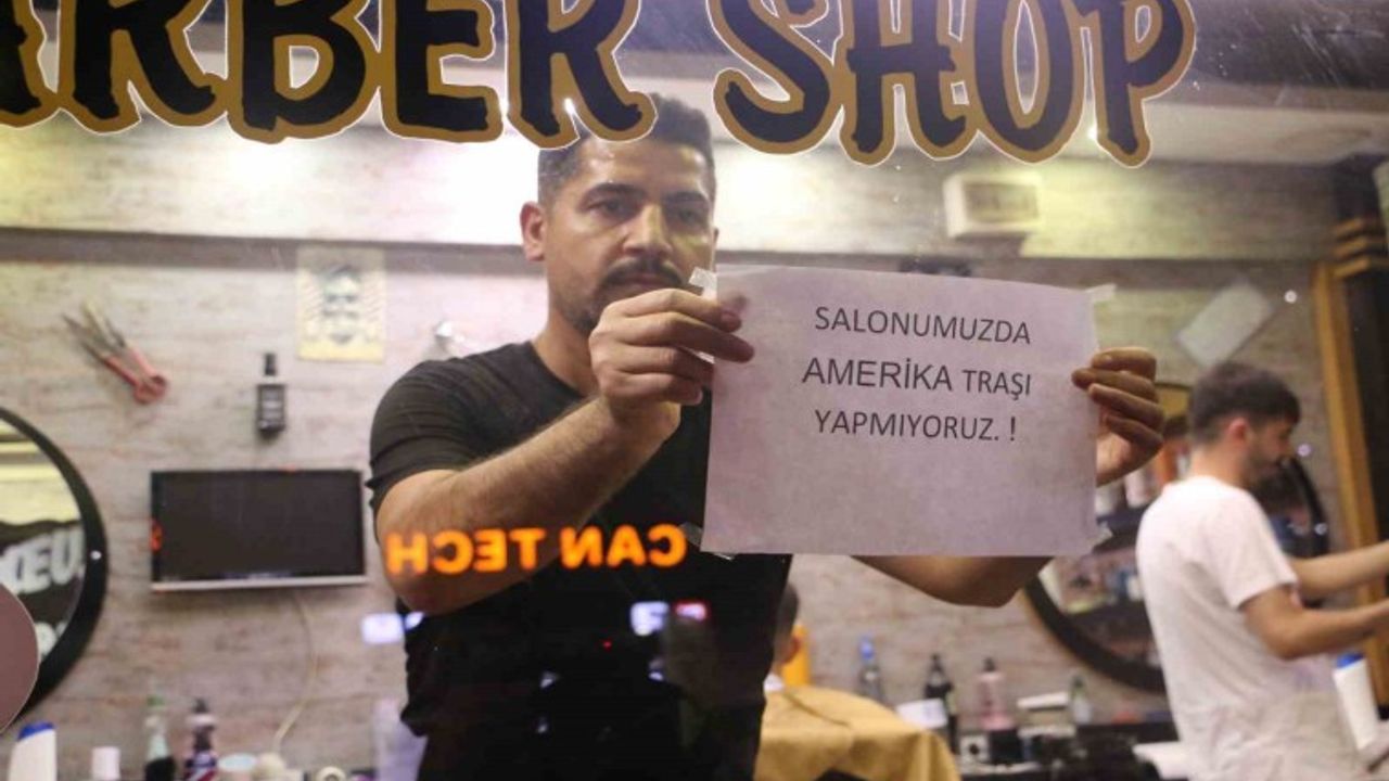 Huzurevleri Mahallesi’ndeki berber salonunu işleten Mevlüt Aktan, ABD ve İsrail’e tepkisini “Salonumuzda Amerikan tıraşı yapmıyoruz” yazısını dükkanın camına asarak ortaya koydu. Yaptığı davranışın tüm berber arkadaşlarına örnek olmasını isteyen Aktan, İsrail mallarının tüketilmesine karşı olduğunu da belirtti.
