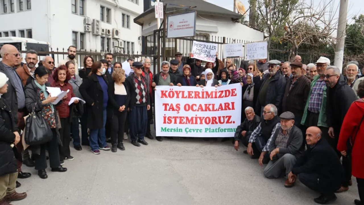 Tüsan Yapı Sanayi A.Ş tarafından yapılması planlanan taş ocağının bölgedeki üretime zarar vereceğini düşünen köylüler seslerini duyurmak için Mersin Çevre, Şehircilik ve İklim Değişikliği İl Müdürlüğü önünde toplandılar.