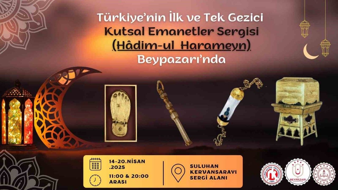 İslam dünyasının en değerli emanetlerinden olan Kâbe Örtüleri, Sakal-ı Şerif ve Kadem-i Şerif gibi kutsal eşyaların yer aldığı Hadimü’l Haremeyn Sergisi Beypazarı Tarihi Suluhan Kervan Sarayı sergi alanında 14 -20 Nisan tarihleri arasında ziyarete açılacak.