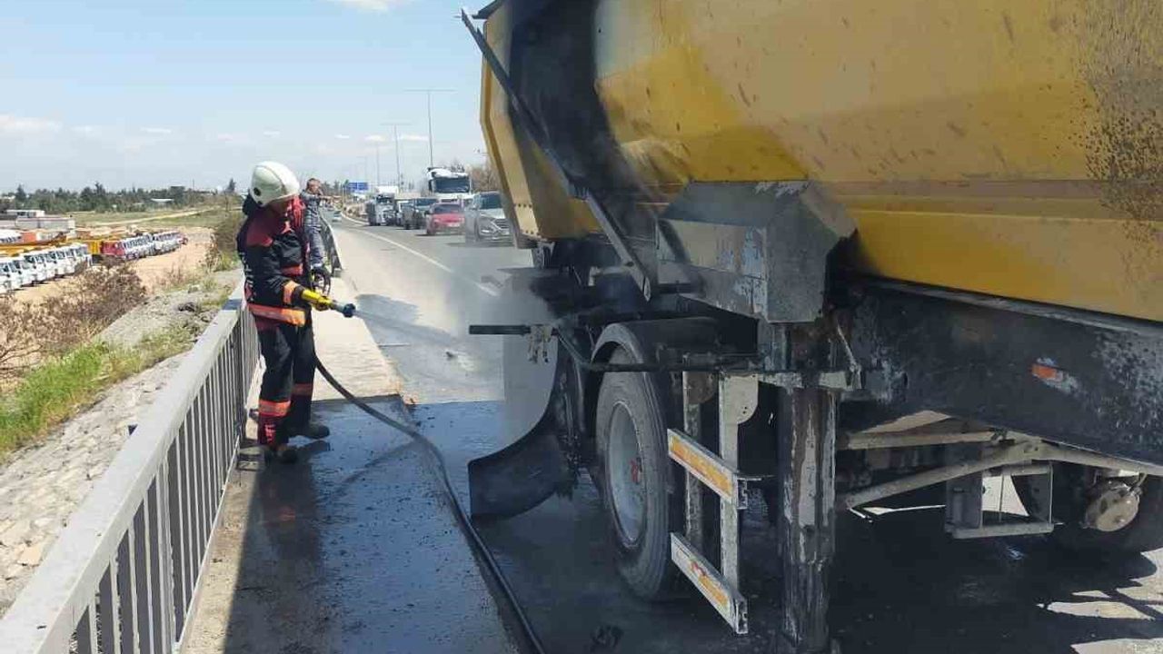 Malatya’nın Yeşilyurt ilçesinde hafriyat kamyonunun lastik kısmında çıkan yangın, itfaiye ekiplerinin hızlı müdahalesiyle söndürüldü.