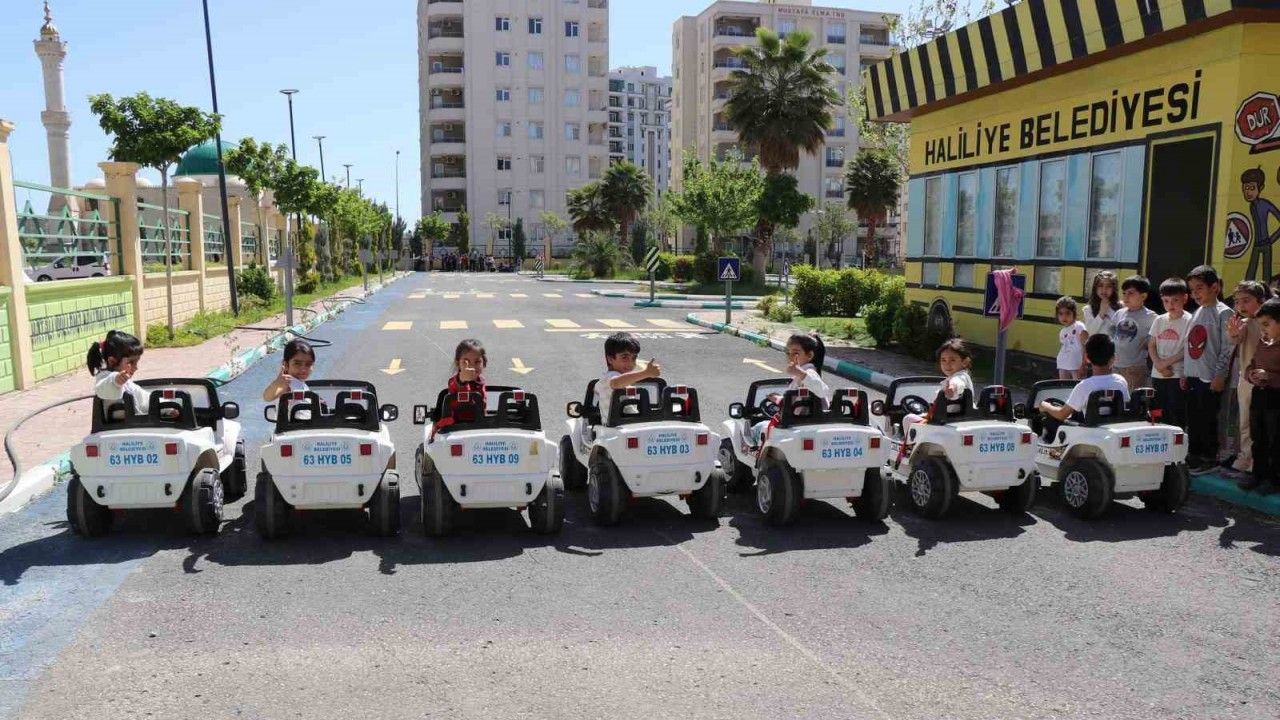 Haliliye Belediyesi Çocuk Trafik Eğitim Parkı ile öğrencilere yönelik trafik bilinci kazandırma çalışmaları sürüyor. Minyatür bir şehrin canlandırıldığı eğitim alanında trafik polisleri ile kuralları öğrenen minikler, akülü arabalar ile sürücülük deneyimi yaşıyor.