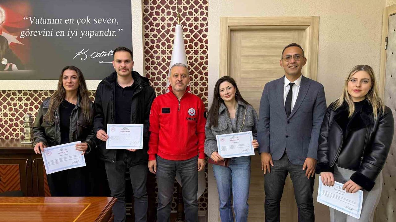 Düzce Atatürk Devlet Hastanesi Muncurlu Ek Yerleşkesinde Çocuk Acil, Çocuk Poliklinikleri ve Gebe Merkezi’nde boyama çalışmaları gerçekleştiren Düzce Üniversitesi öğrencileri ve Dümerang ekibine Düzce İl Sağlık Müdürü Dr. Yasin Yılmaz teşekkür belgesi vererek gençleri onurlandı.