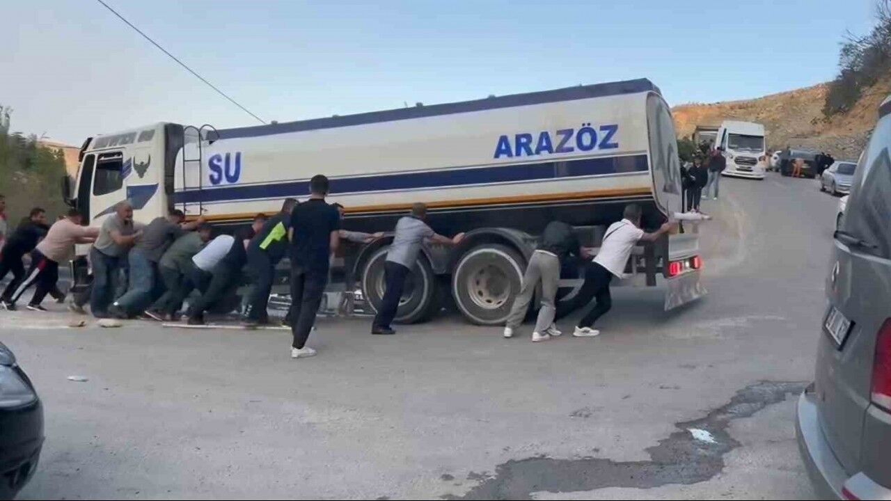Olay, Darende’nin önemli turistik noktalarından biri olan Günpınar Şelalesi yakınlarında meydana geldi. Şelale çevresinde hatalı şekilde park edilen araçlar, bölgede dönüş yapmaya çalışan bir arazözün ilerlemesini engelledi. Araç sıkışan trafikte hareket edemez hale gelirken, durumu fark eden vatandaşlar arazözü iterek bulunduğu yerden çıkardı.