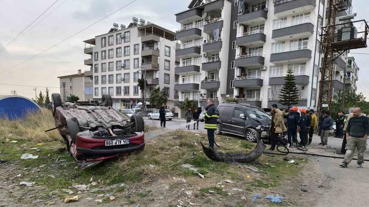 Kaza, Dörtyol ilçesi Numuneevler Mahallesi’nde meydana geldi. Edinilen bilgilere göre, 31 ASK 071 plakalı hafif ticari araç bağlantı yolu üzerinde seyir halindeyken 34 ALP 098 plakalı otomobille çarpıştı. Ters dönen araçta sıkışan sürücü itfaiye ekipleri tarafından kurtarılırken, kazada 3 kişi yaralandı. İhbar üzerine bölgeye polis, itfaiye ve sağlık ekipleri sevk edildi. Yaralılar Dörtyol Devlet Hastanesi’ne kaldırılırken, kazayla ilgili inceleme başlatıldı.