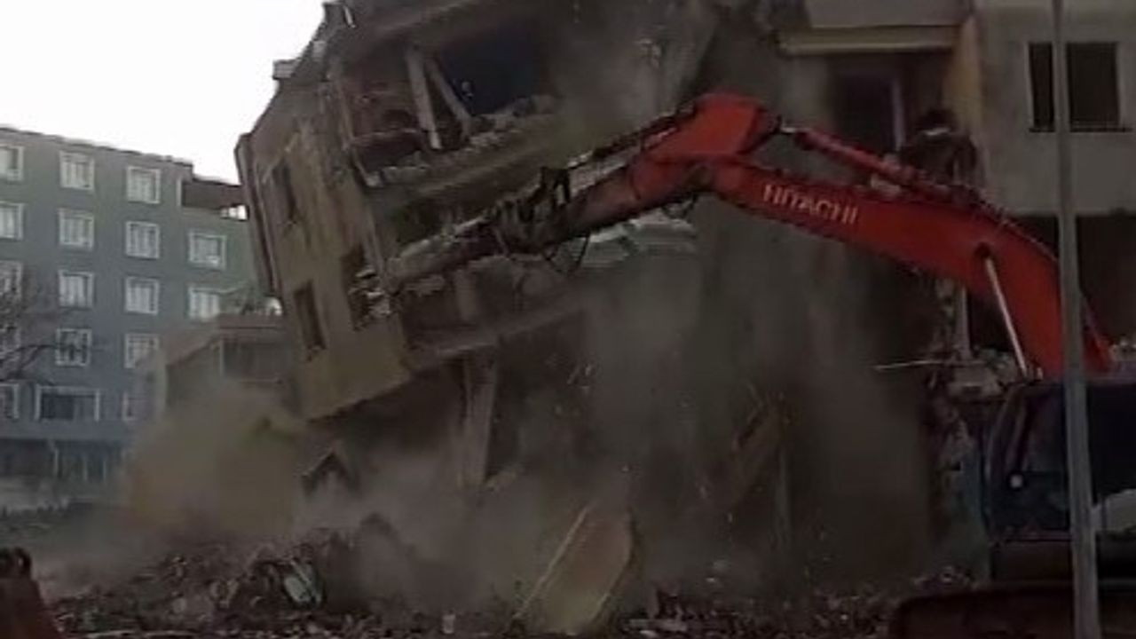'Depremden bayağı hasar almıştı ve iş makinesinin yardımıyla 5 katlı bina yıkıldı'
