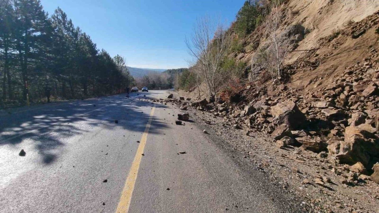 Yola düşen taşlar, Karayolları ekipleri tarafından temizlenirken, jandarma da bölgede güvenlik önlemi aldı ve muhtemel kazaların önüne geçti.