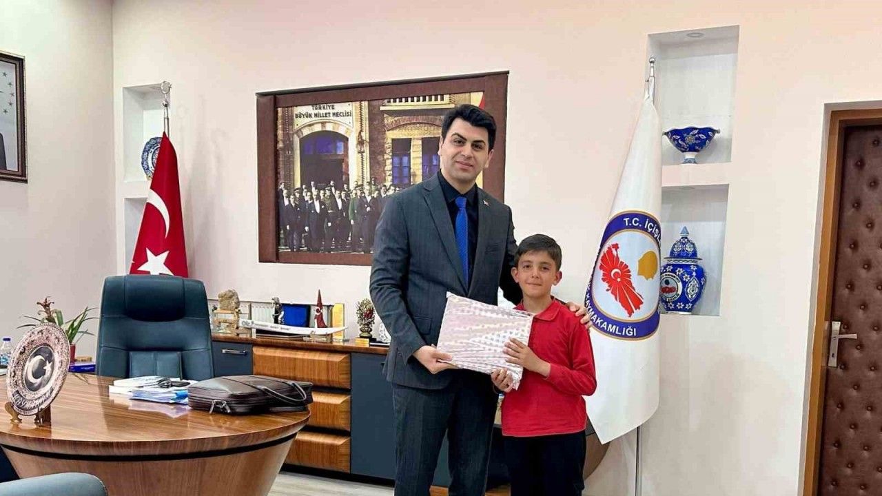 Hisarcık Kaymakamı Muhammet Samet Bahar, il geneli düzenlenen "Sağlıklı Nesil Sağlıklı Gelecek" yarışması edebi eser şiir dalında birincilik elde eden Cumhuriyet İlkokulu öğrencisi Burak Danış’ı ödüllendirdi.