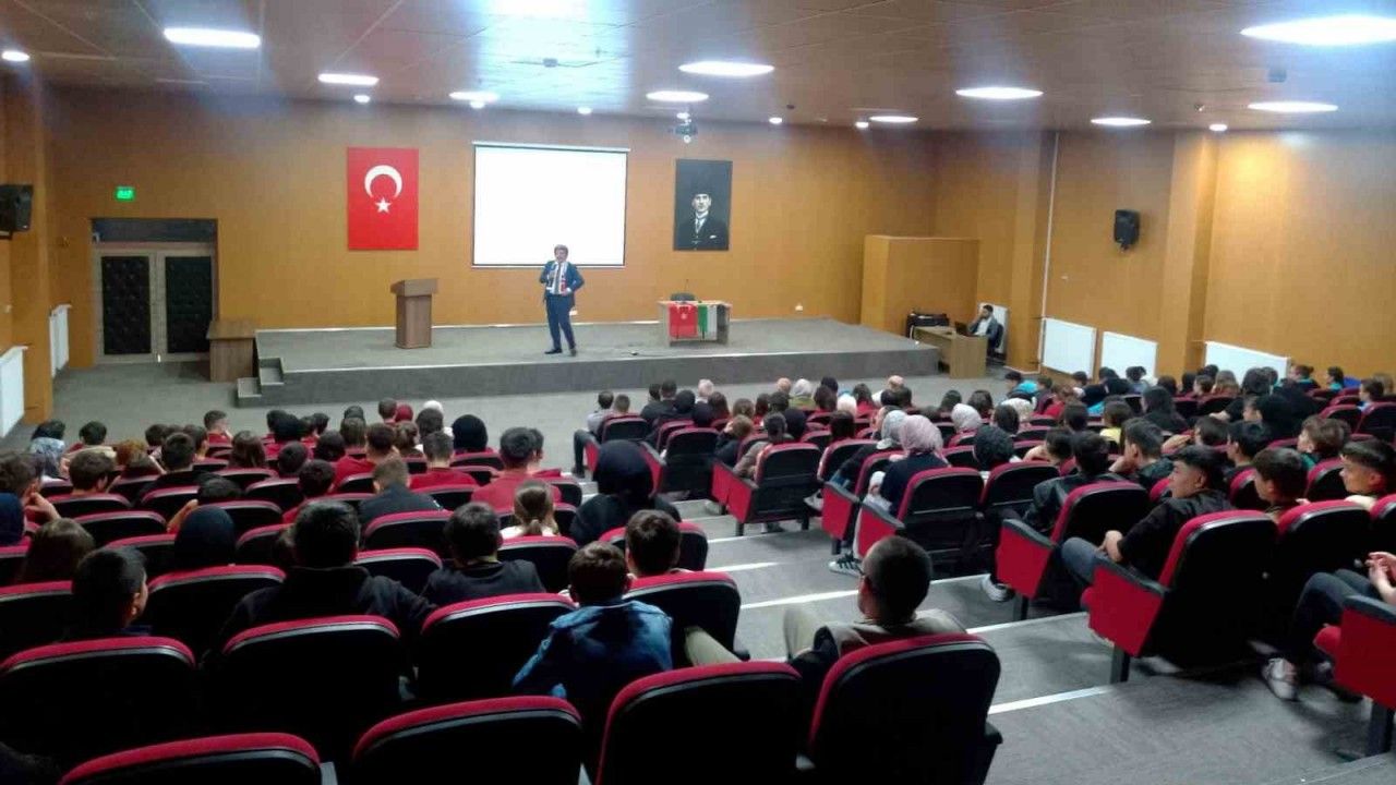 Anadolu İmam Hatim Lisesi Konferans Salonundaki konferansa, Milli Eğitim Müdürü Salim Karaboğa, Şube Müdürü Şeyda Bulut, Okul Müdürleri, öğretmen ve öğrenciler katıldı.