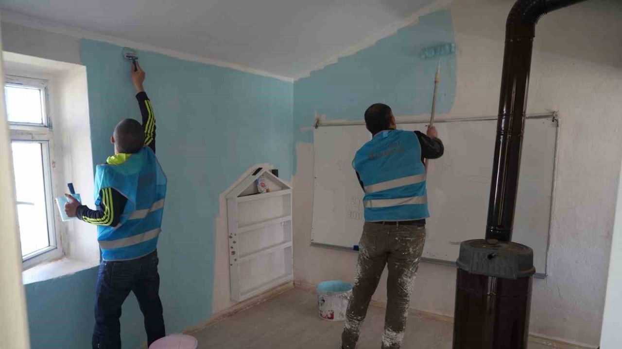 Muş’ta denetimli serbestlik kapsamında kamu yararına çalışma yükümlülüğü bulunan hükümlüler, 23 Nisan Ulusal Egemenlik ve Çocuk Bayramı öncesinde okulda boyama ve tadilat çalışmalarına katıldı.
