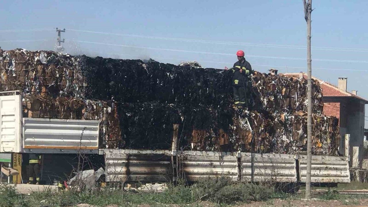 Konya’nın Ereğli ilçesinde hurda ve kağıt taşıyan tırın dorsesinde çıkan yangın paniğe neden oldu.