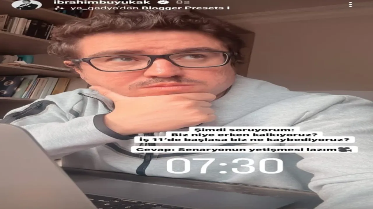 İbrahim Büyükak, sosyal medya aracılığıyla paylaştığı görselinde Acun Ilıcalı'ya göndermede bulundu. Geçtiğimiz günlerde mesai saatleri hakkında konuşan Ilıcalı "Mesai neden 11.00'de başlamıyor. Referandum yapılsın. Ben çalışanlarıma 11'de gelin diyorum" demişti. İbrahim Büyükak, Acun Ilıcalı'nın o konuşmasına gönderme yaptı.