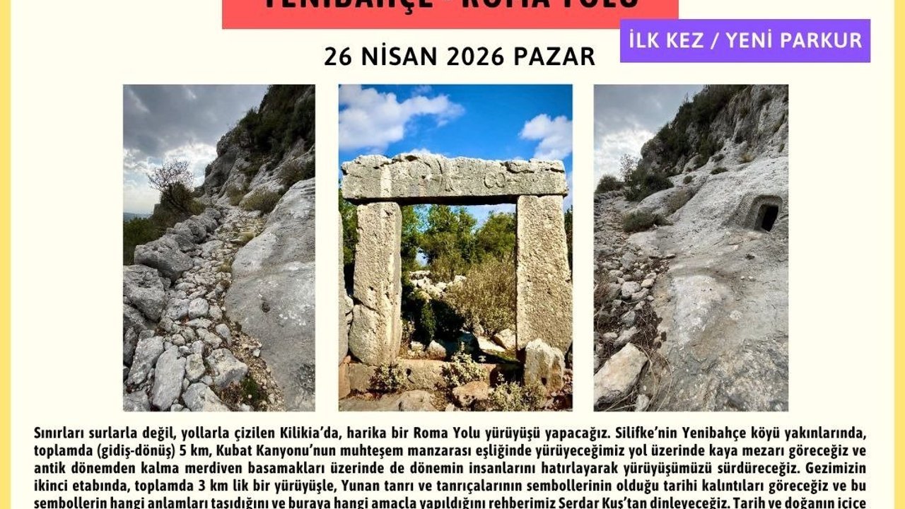 Gezinin rehberi Arkeolog Serdar Kuş, “Mersin’de ilk kez düzenlenecek olan bu gezide hem bin 800 yıl önce yapılmış Roma Yolu’nda yürünecek hem de aynı bölgede Kilikia’nın tapınım gören tanrı sembollerinin olduğu tarihi yapılar gezilecek. İçel Sanat Kulübü’nün efsane gezi rehberi rahmetli Erdal Şener’in doksanlı yıllarda başlattığı bu eşsiz gezilere, tüm doğa ve arkeoloji sever dostlarımızı bekliyoruz” dedi.