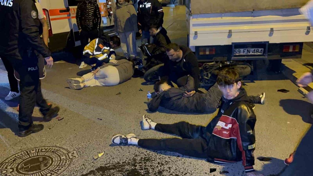 Tekirdağ’ın Çorlu ilçesinde iki motosikletin kafa kafaya çarpışması sonucu meydana gelen kazada 3 kişi yaralandı. Kaza anı kameraya yansıdı.
