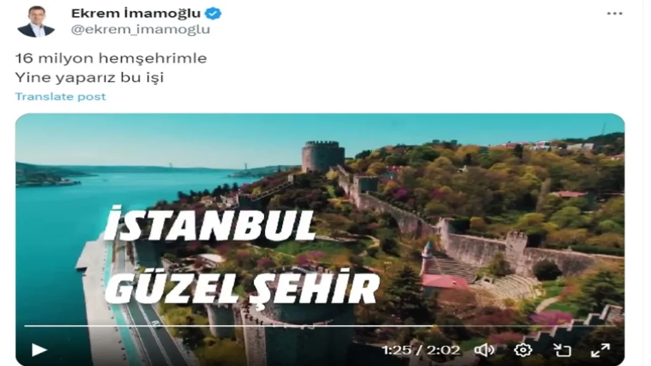 İmamoğlu bugün sabah saatlerinde sosyal medya hesabından yaptığı paylaşımda “16 milyon hemşehrimle yine yaparız bu işi” başlığını kullandı ve göreve geldikten sonraki 5 yıl içerisinde gerçekleştirdiği faaliyetleri videoda gösterdi.