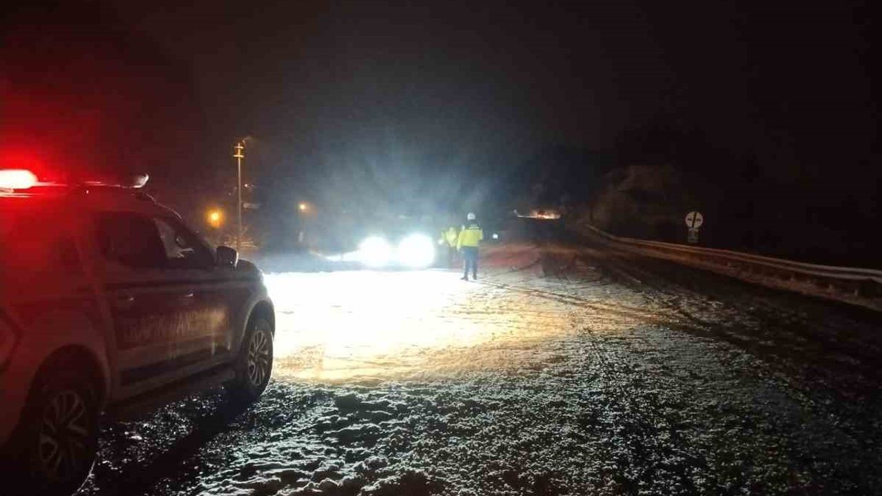 İnegöl’ün Tahtaköprü girişinde görev alan İnegöl Jandarma Komutanlığı trafik timleri, tır ve kamyonlar ile zincir takmayan otomobillerin geçişine izin vermedi.