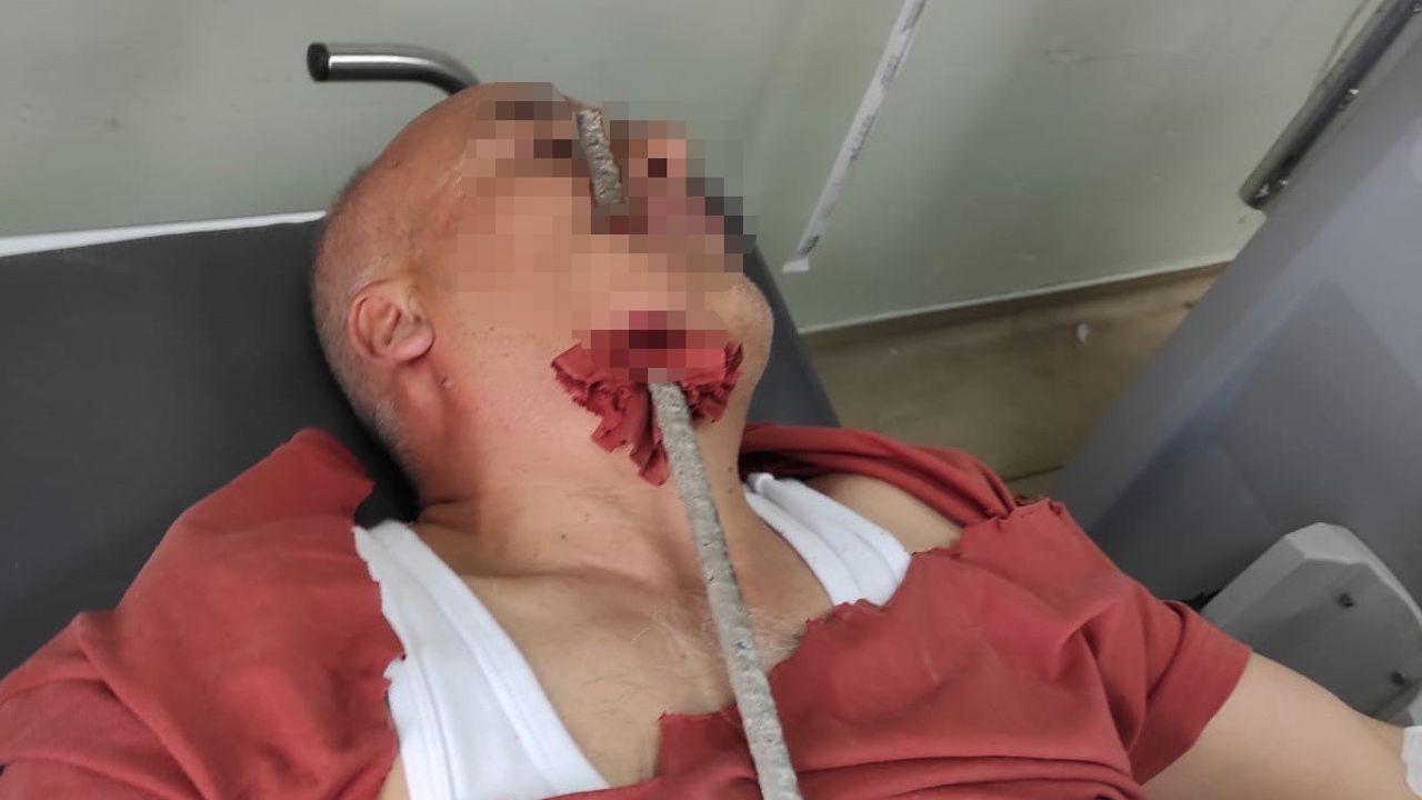 Hatay’da yüzüne inşaat demiri saplanan işçinin yüzündeki demir, itfaiye ekipleri tarafından çıkarıldı.